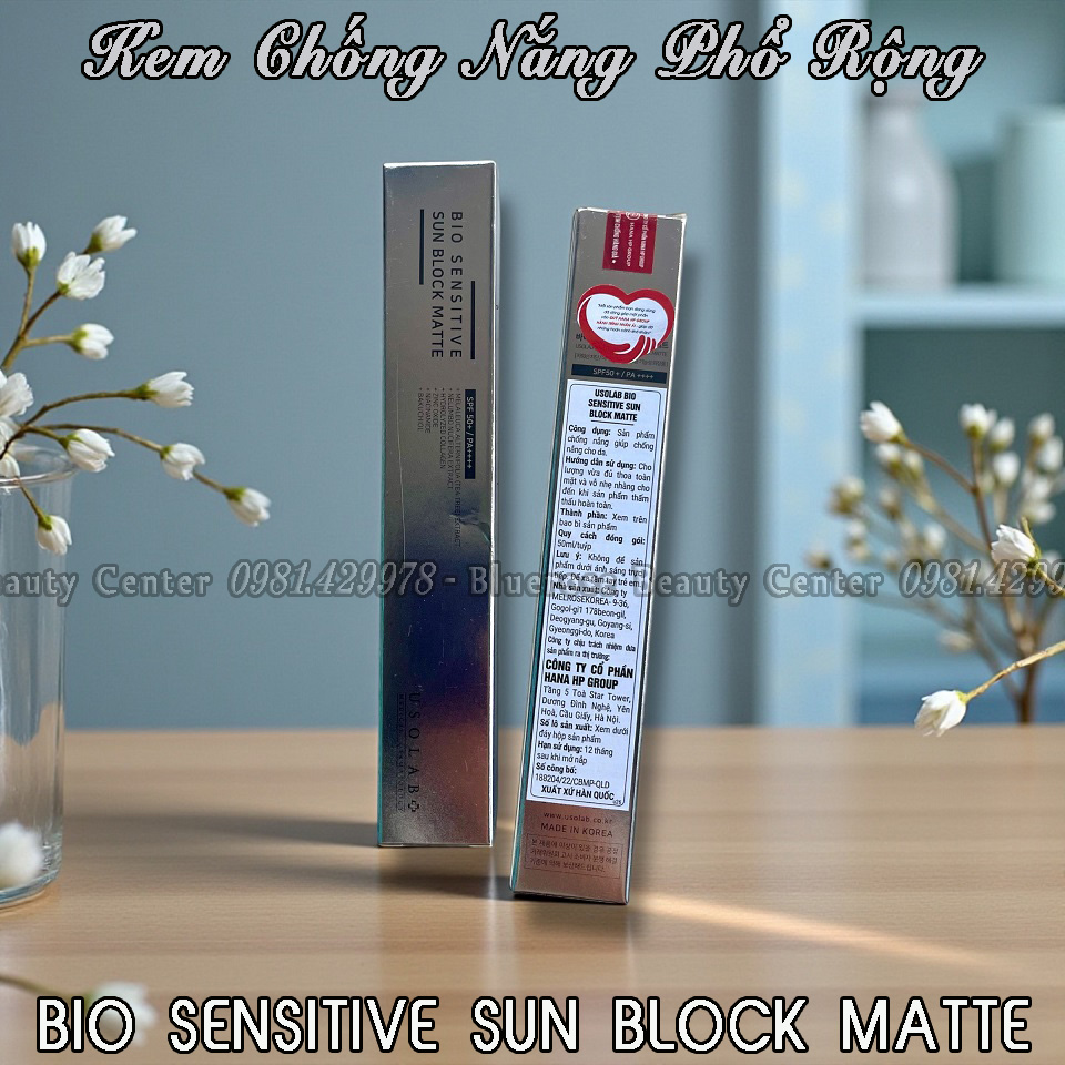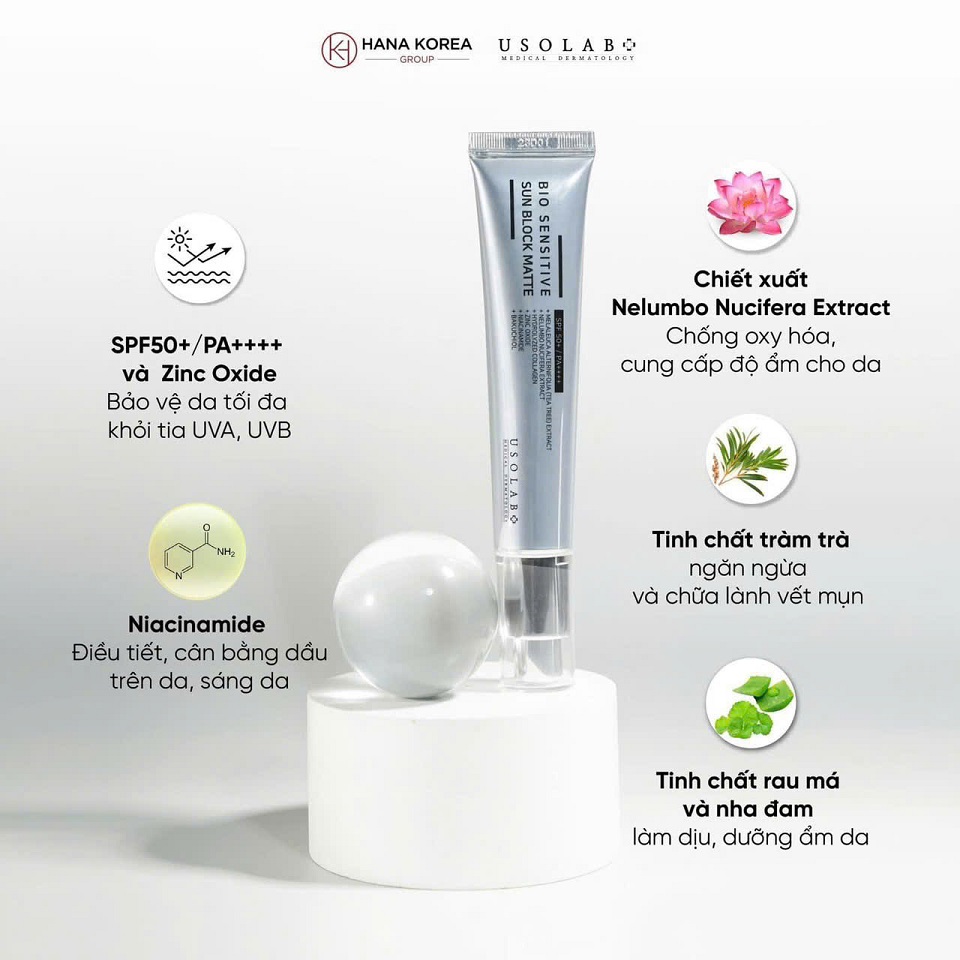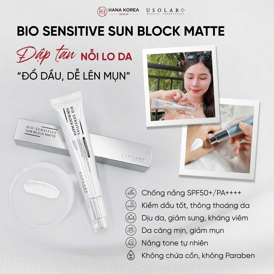 KEM CHỐNG NẮNG SINH HỌC USOLAB BIO SENSITIVE SUN BLOCK MATTE - Trọng lượng: 50ml - Xuất xứ: Hàn Quốc - Mã Sản Phẩm: 8809801691774 Giá bán lẻ: 930.000 đồng/Chai