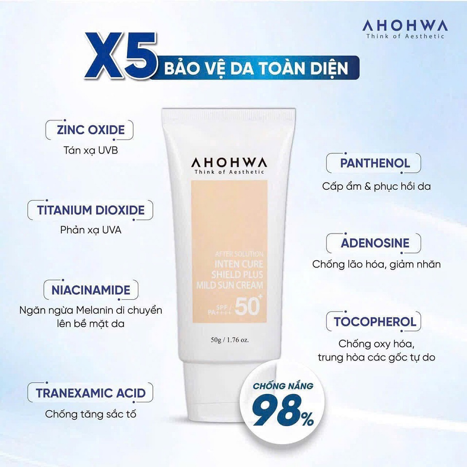 💙 AHOHWA After Solution Inten Cure Shield Plus Mild Sun Cream SPF50+ PA++++